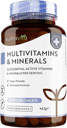 “Multivitamin and Minerals – 365 Vegan Tablets (1-Year Supply) – Complete Multivitamin with 26 Essential Vitamins and Minerals – Multivitamin Supplement for Men and Women – Nutravita”