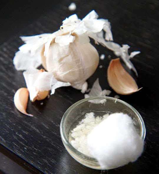 Either extract the garlic juice and mix it with 1 teaspoons or so of water, or mash up 2-3 cloves and let sit in water for about 10 minutes. Using a cotton pad, soak up the juice or garlic water and cover problem spots. If you don’t have a cotton pad or something similar to apply it with, the mixture can be a bit runny and hard to work with. In this case, substitute aloe vera gel for water. If you choose to ingest garlic, a clove or two a day should be enough. Prepare it however you like.